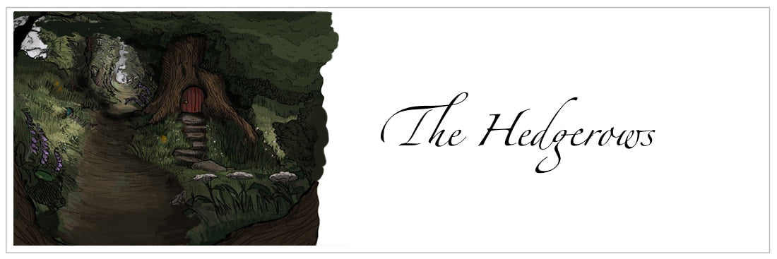So many creatures live in the hedgerows, in burrows, nests and cozy little houses. Near the house are so many lovely little spots, this is a little pathway that leads from the vegetable garden though to the orchard. If you look closely you can see a basket of baby carrots, berries and lettuce that Frank has picked and left for a shy neighbor to collect.