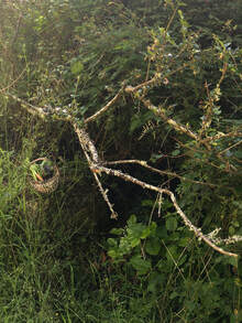 I spotted this little satchel hanging on a thorn in the brambles, I think it must belong to one of the lovely deer mice who live in the woodshed.